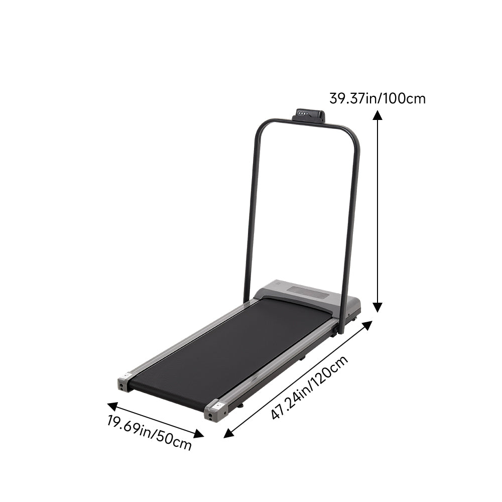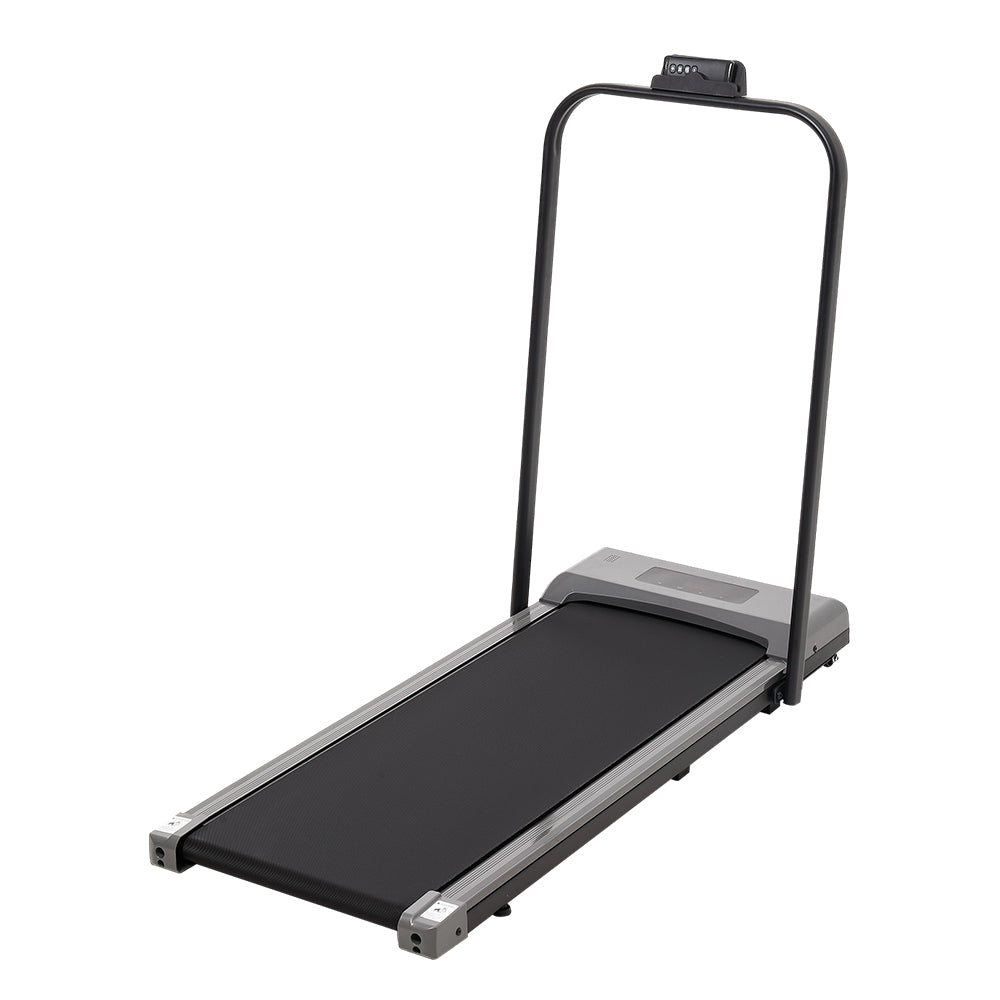 Stay fit, stay healthy, and make every step count with this fitness flat treadmill. The slim profile combined with quiet, bottom-mounted rollers makes moving the treadmill effortless, allowing you to easily position it for the perfect workout setup. The wide running area offers plenty of space for a comfortable stride, whether walking leisurely or jogging at a faster pace. Its anti-slip running belt ensures excellent traction, keeping you steady as you work out. Moreover, powered by a 2.0HP motor, it delivers strong performance while being energy-efficient and quiet. Tailor your workout to your pace with adjustable speeds of up to 6 km/h. Whilst the LED display shows real-time data on time, speed, calories burnt, and distance, making it easy to track your progress. Moreover, a thoughtful handrail provides support to help users maintain balance while walking or running. This treadmill combines innovation, practicality, and comfort, making it an essential part of your daily fitness routine.