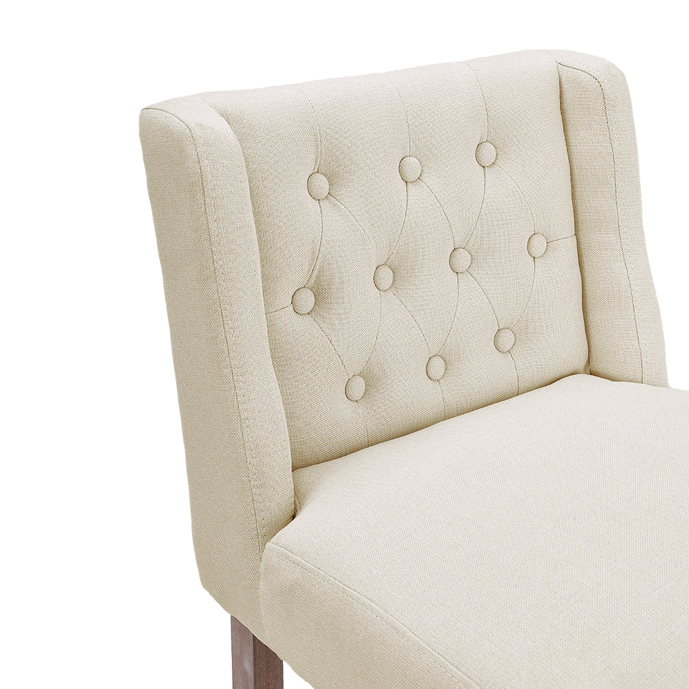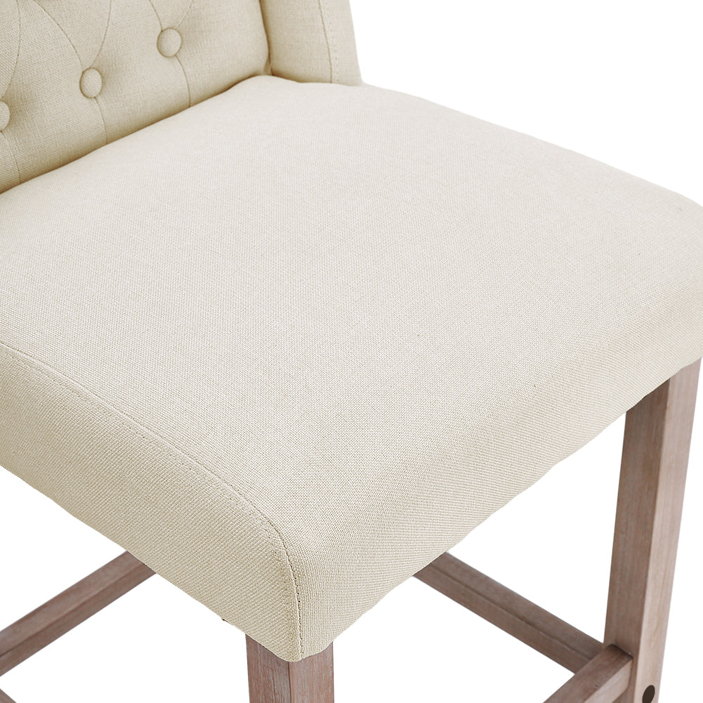 Want something to complete your counter ensemble? Here comes our Livingandhome exclusive bar stool that will make for a focal point while offering a comfy spot to sit. It adopts soft linen fabric and dense sponge filling to afford you exceptional seating comfort. We are proud of its sophisticated profile. The straight and clean lines, the low back, the tufted back and the neutral palette lend an elegant touch. A brilliant choice for any farmhouse and contemporary home.