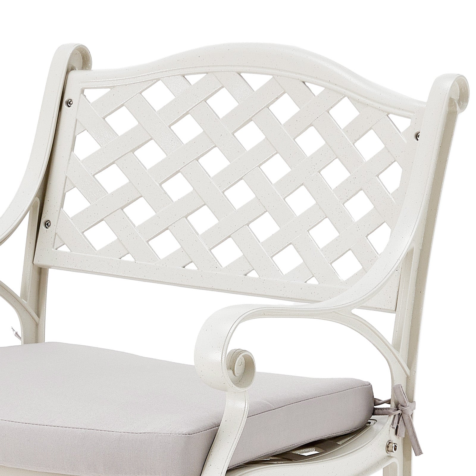 Enjoy a lazy, relaxing afternoon on your balcony with this two-piece garden chair set. Featuring a classic lattice backrest for breathability and timeless elegance, it adds style to any outdoor space. The gracefully curved armrests follow the natural contour of your hands, reflecting vintage European charm. Each chair comes with a soft, light-grey soft cushion secured by sturdy straps—comfortable and slip-resistant. Reinforced with thickened legs for excellent stability and strong load-bearing capacity. Perfect for patios, balconies, terraces, or gardens, this set pairs beautifully with outdoor tables to create your ideal relaxation corner.