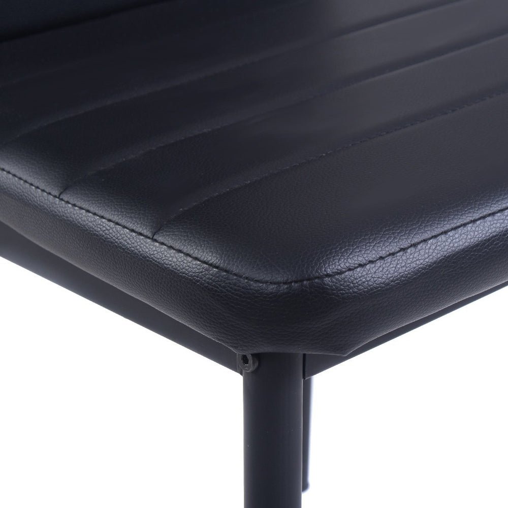 Upholstered in top-notch faux leather, this ergonomically designed dining chair elevates your dining experience. The plush seat cushion and backrest are generously filled with dense foam, providing exceptional comfort that eases your body and banishes fatigue. The quilted finish enhances ventilation across the seating surface, ensuring a breathable experience. The chairs blend harmoniously with our dining table, bringing a contemporary home aesthetic to your dining room.