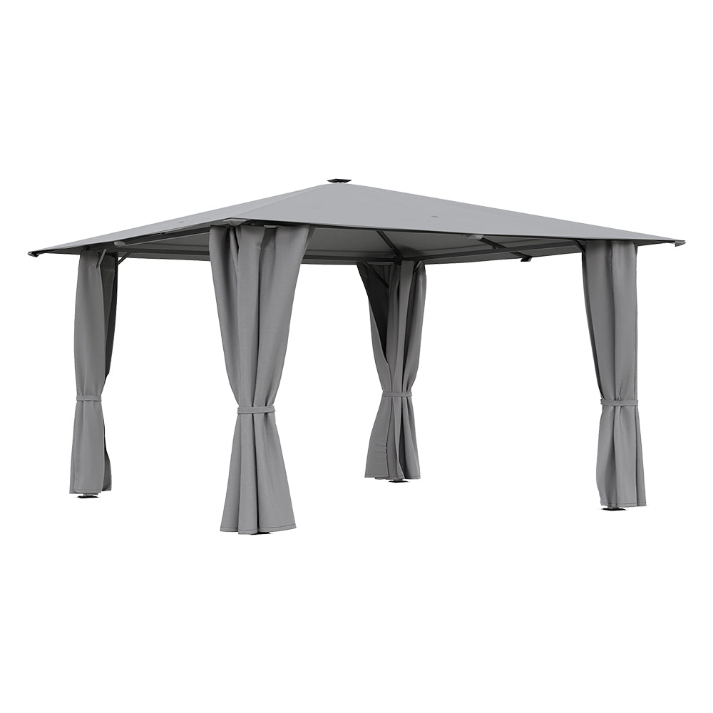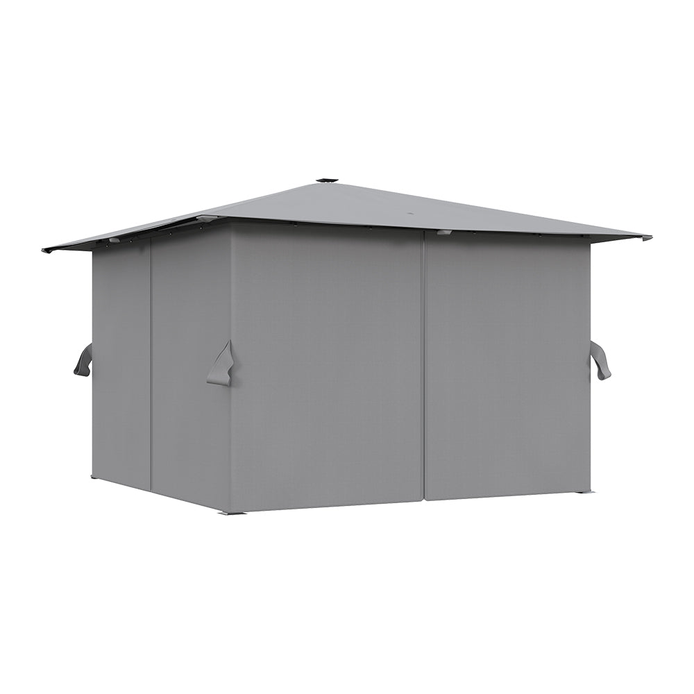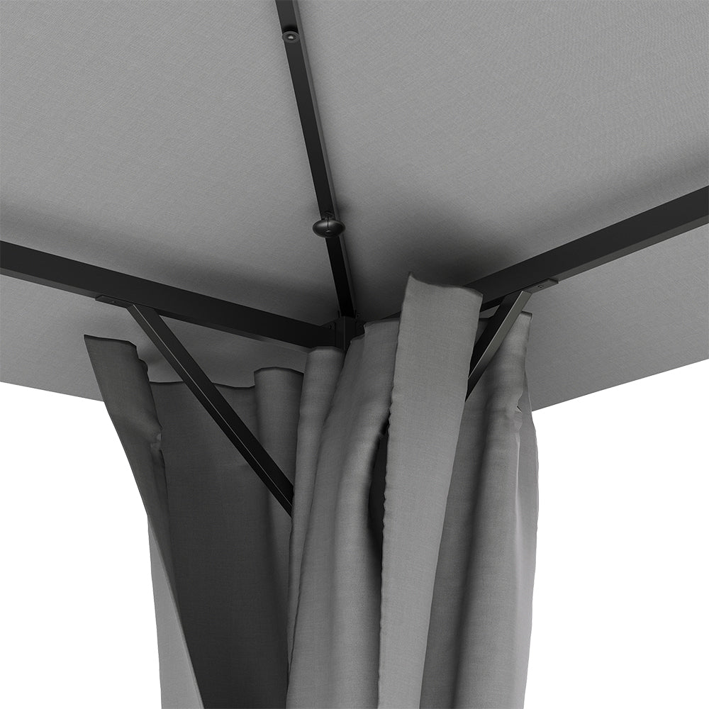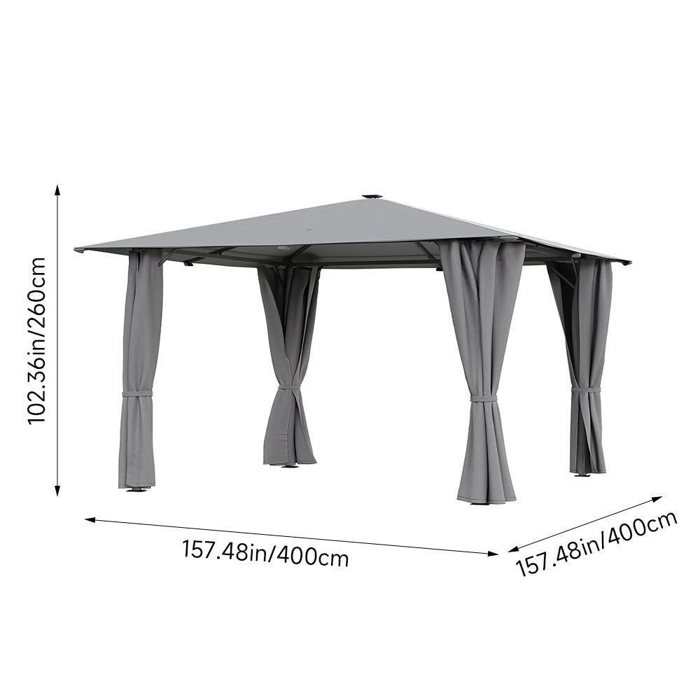 This elegant gazebo provides excellent shade and elevates the architectural beauty of your outdoor space. Solar-powered LED lights are cleverly integrated into the top frame, keeping the central gathering area brightly illuminated and creating a warm, romantic ambiance at night. The 180g PA-coated polyester canopy offers outstanding waterproof performance and durability, while the included premium curtains add privacy and a refined touch, allowing flexible control over shade and seclusion. Perfect for gardens, patios, and courtyards, this versatile gazebo blends functionality with style, creating a comfortable, inviting outdoor environment for year-round enjoyment.