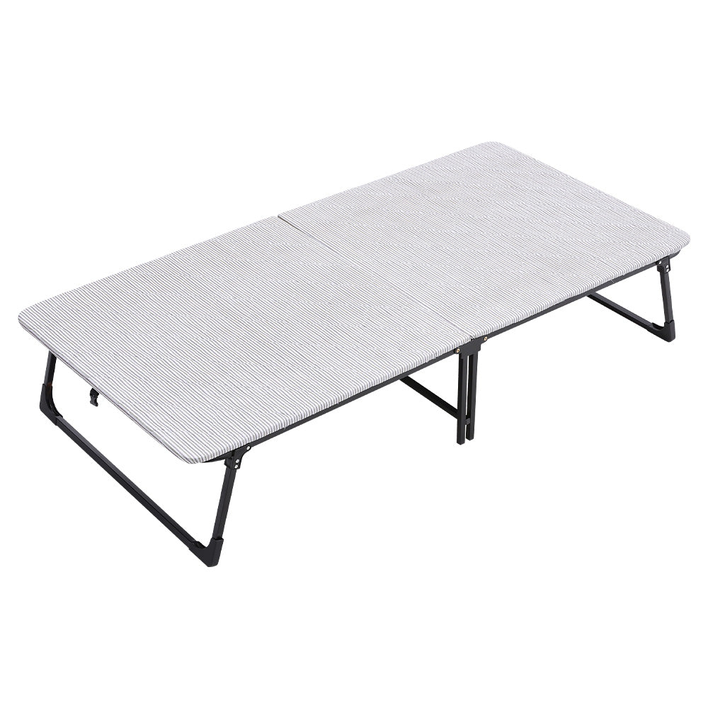 Provide a comfortable and convenient sleeping solution with this rollaway bed. A thoughtful combination of a wooden board and fabric, the bed surface provides a comfortable and restful sleep. The metal slats create a stable base, evenly distributing body weight and ensuring a secure and supportive sleeping surface that can withstand regular use. One of the most remarkable features of this rollaway bed is its two-fold design. With just a few simple steps, you can effortlessly fold the bed into a compact and upright position for easy storage. Additionally, the four 360-degree rotating wheels on one side provide exceptional flexibility and ease of use. Whether you need an extra bed for overnight guests, a comfortable resting spot in the office, or a temporary sleeping solution during renovations, this rollaway bed is up to the task.