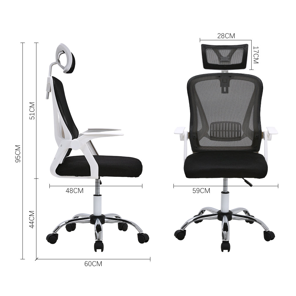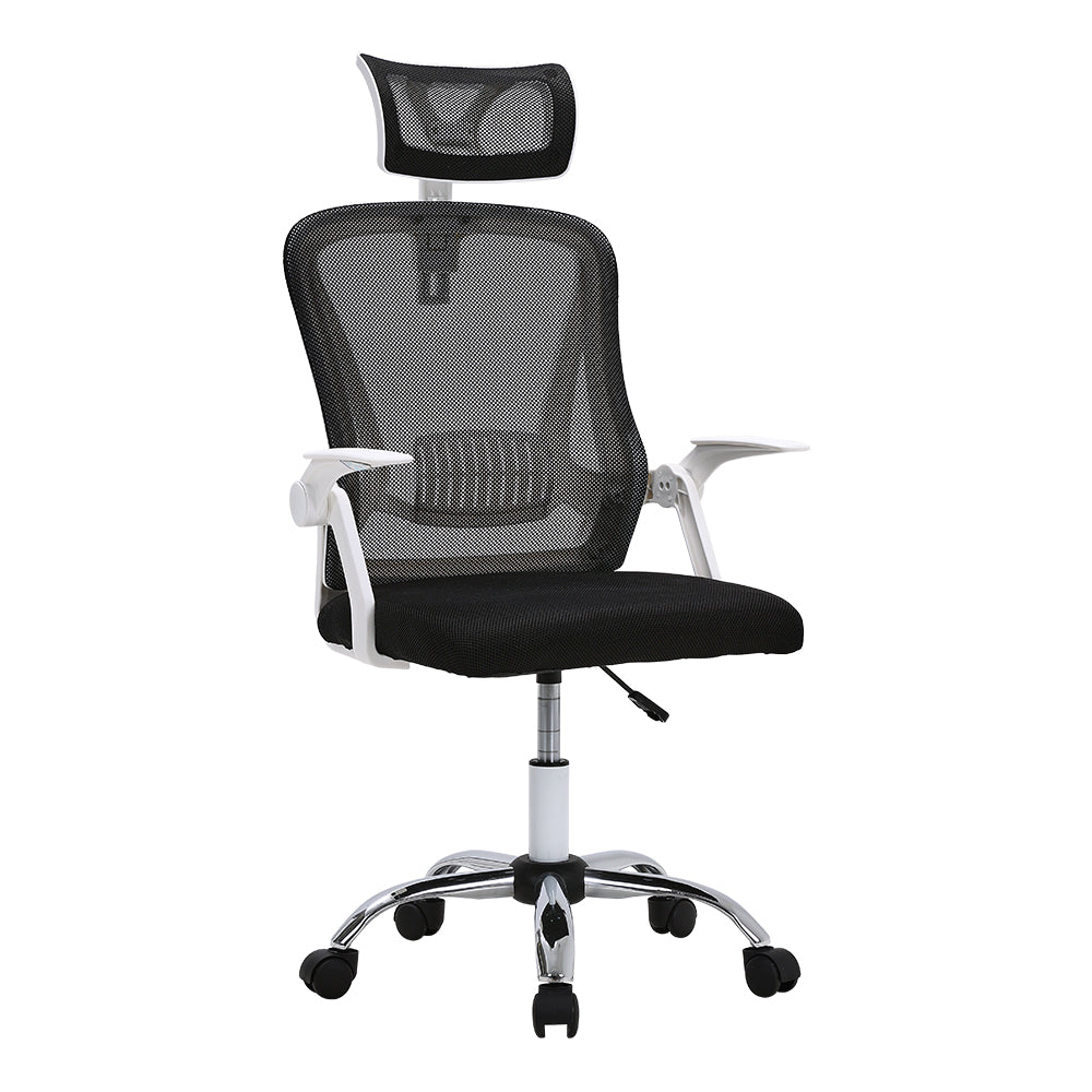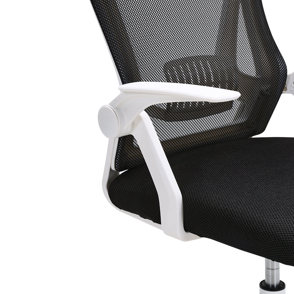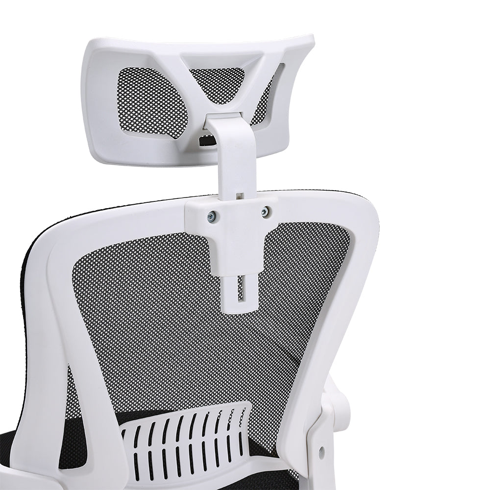 An ergonomically designed swivel office chair specifically catered to the needs of professionals who spend extended hours sitting and working. The standout features lie in the mesh backrest, providing crucial lumbar support and alleviating pressure, ensuring proper ventilation, and promoting a dry and comfortable experience. The seat cushion is generously padded with dense foam, resisting deformation even during extended periods of sitting. For moments of respite, simply adjust the height and relax in comfort.