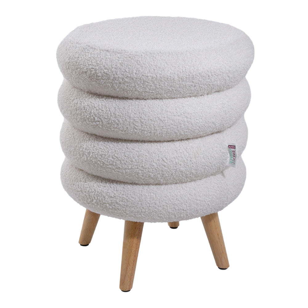 This footstool perfectly combines minimalist aesthetics with practical functionality. Featuring a multi-layered ring-stacked structure, its overall shape is smooth and uniquely designed, making it a highly decorative piece for your home. Crafted from teddy fleece fabric, it delivers an exceptionally soft and warm-to-the-touch seating experience. Internally, it is filled with high-density sponge that maintains its shape even after prolonged use, providing you with stable support. It is ideal for placement in various areas such as your bedroom, living room, or hallway, serving either as a cosy seat or a convenient footrest.