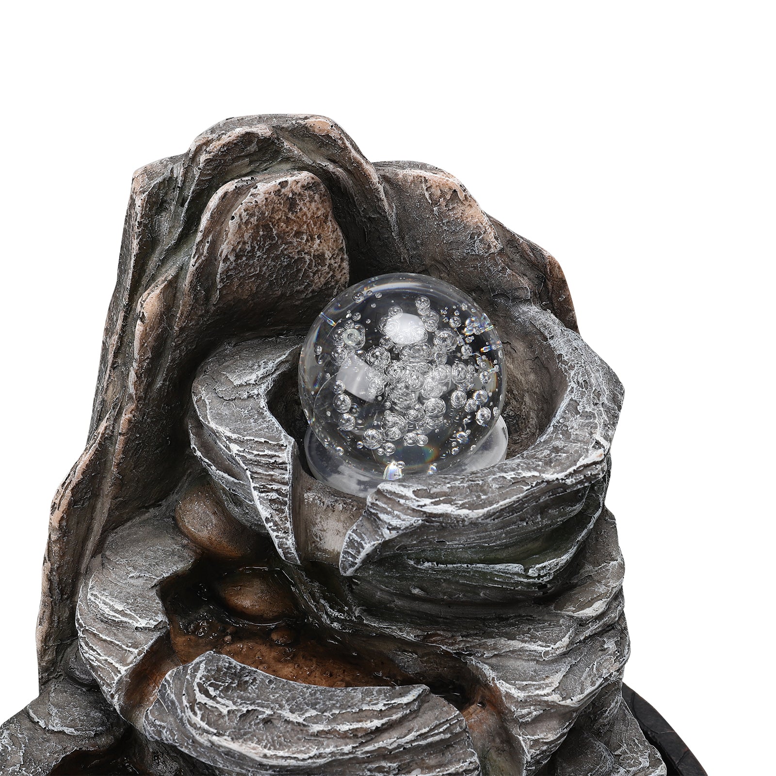 With tiers of rock stacking to form a cascading waterfall while creating a trickling sound, our tabletop water fountain will put you in real nature. For enhanced visual enjoyment, the clear crystal ball on top rotates and glows as the water flows. Place it on the console table in the entryway to welcome guests, or on the table beside your bed to soothe your mind before you fall asleep.