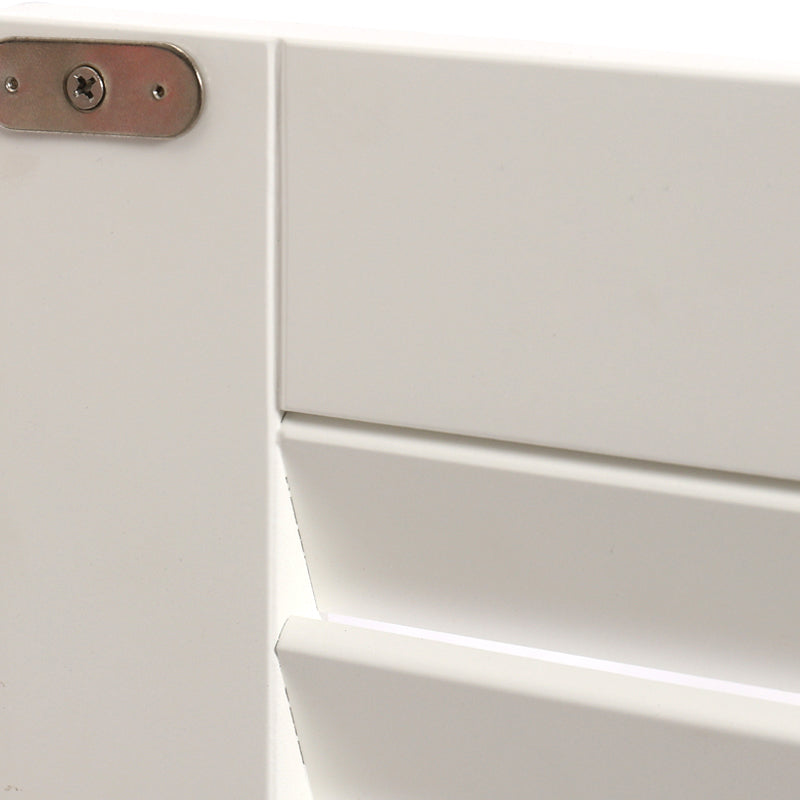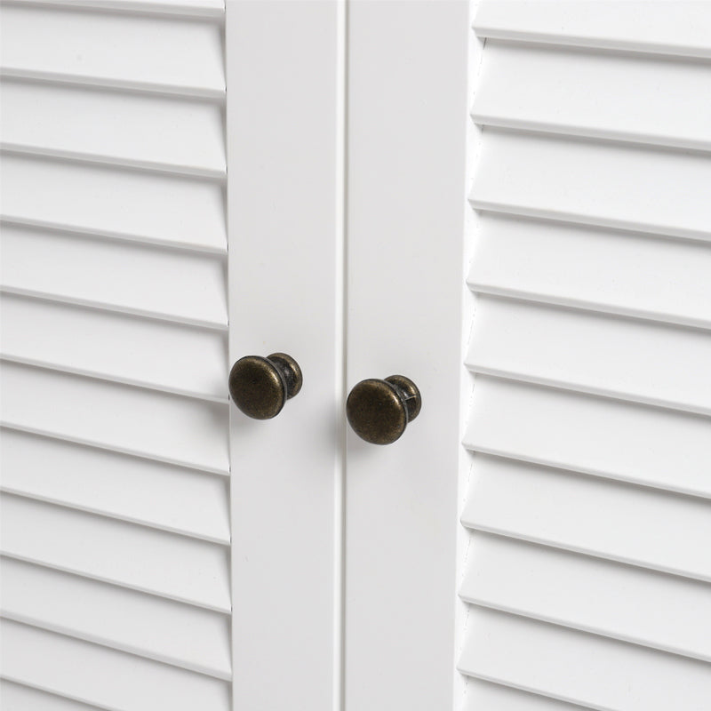This sink cabinet features a classic design in clean white with double louvered doors for excellent ventilation. Offering efficient storage, this cabinet serves as a practical solution, accommodating pipes at the back and featuring shelves for organizing bathroom essentials, ensuring a tidy space. Moreover, the magnetic closure and premium hardware guarantee quiet and smooth door operation every time. Crafted from premium MDF and boasting a waterproof white finish, this sink cabinet ensures durability and enhances your overall quality of life.