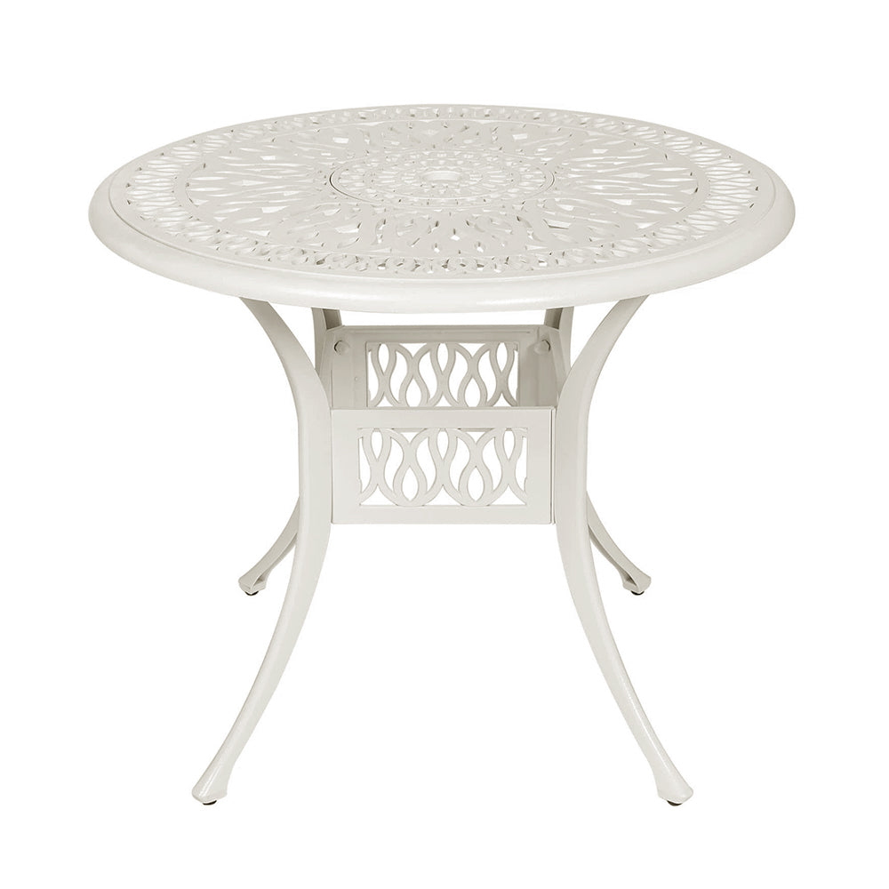 With its lavish design, our table is both practical and aesthetic, adding a touch of elegance wherever it sits. This outdoor table is made of high-quality cast aluminum, thus it is relatively lightweight, making it easy to move. What's more, it requires minimal maintenance, which means it can be left outside all year round. For your convenience, the garden table comes complete with a central hole for the placement of an umbrella or parasol. The table has space for up to four people.
