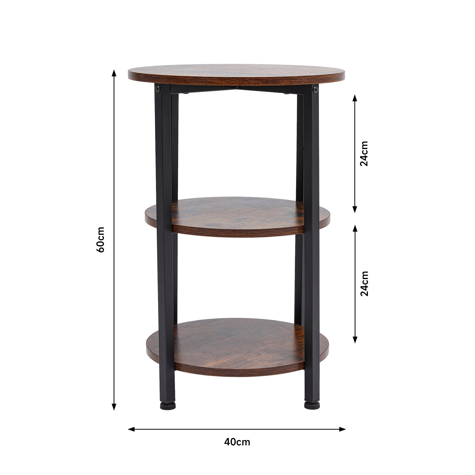 Place this compact side table next to the bed, sofa, or any other preferred spot to create a cozy nook. Its minimalist design is complemented by the clean lines, ensuring that it will not dominate the room, yet it offers a convenient top for your cup, mobile phone, snacks, or any item you want to keep within reach. Additionally, the table provides an ideal display area with 2 shelves for vases, art sculptures, and books, adding warmth and an artistic touch to your space.