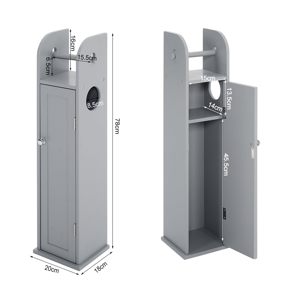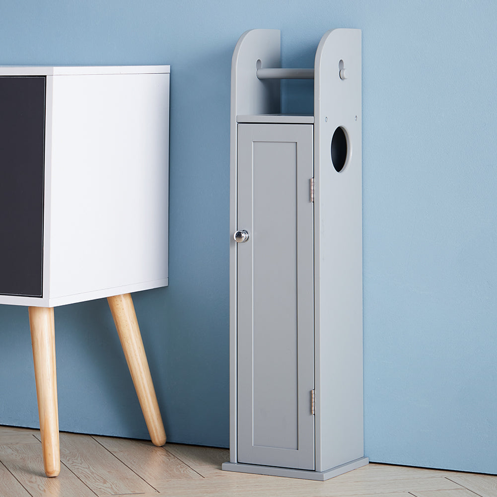 Crafted from durable and sturdy MDF, this compact bathroom cabinet is ideal for limited bathrooms and laundry rooms, providing additional storage without occupying much space. It features a top shelf for storing toilet roll, ensuring convenient access after each toilet use. Additionally, the bottom cabinet with a door offers two tiers of hidden space for various bathroom essentials such as tissues, shampoo, and shower gel.