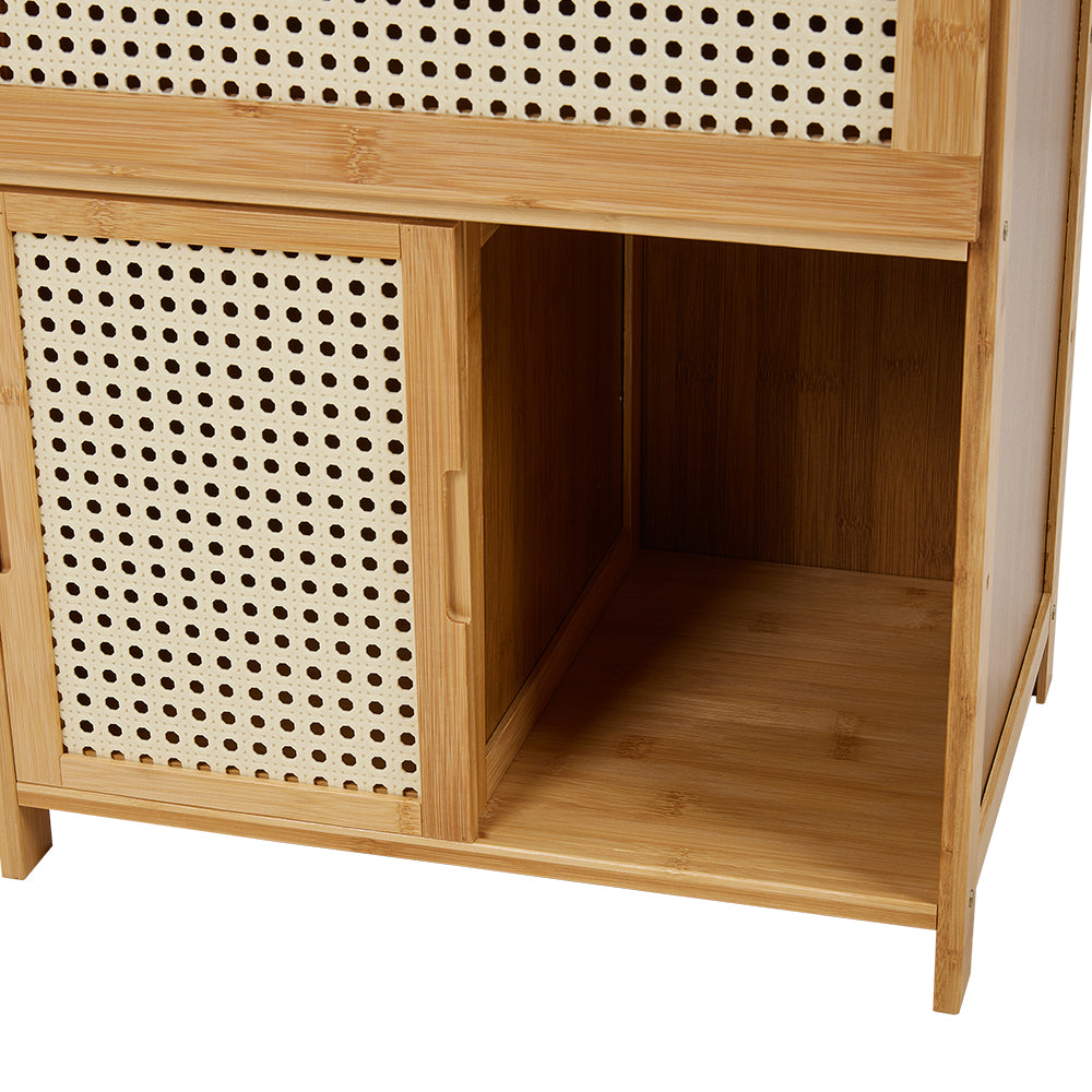 This compact nightstand is perfect for small rooms, offering practical value without sacrificing style. Equipped with a deep drawer and two compartments underneath, it provides ample storage for personal items. The sliding door allows you to easily conceal belongings, keeping your room tidy. The tabletop is designed with a low fence to prevent items from falling off. Crafted from solid wood, this nightstand is both sturdy and durable, making it a reliable addition to any bedroom.