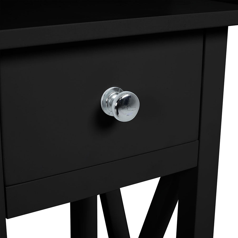 With an elegant, pared-down look with x-shaped side frames and a slender drawer with a simple round metal handle, our vintage console table is the perfect way to enrich your foyer decoration.