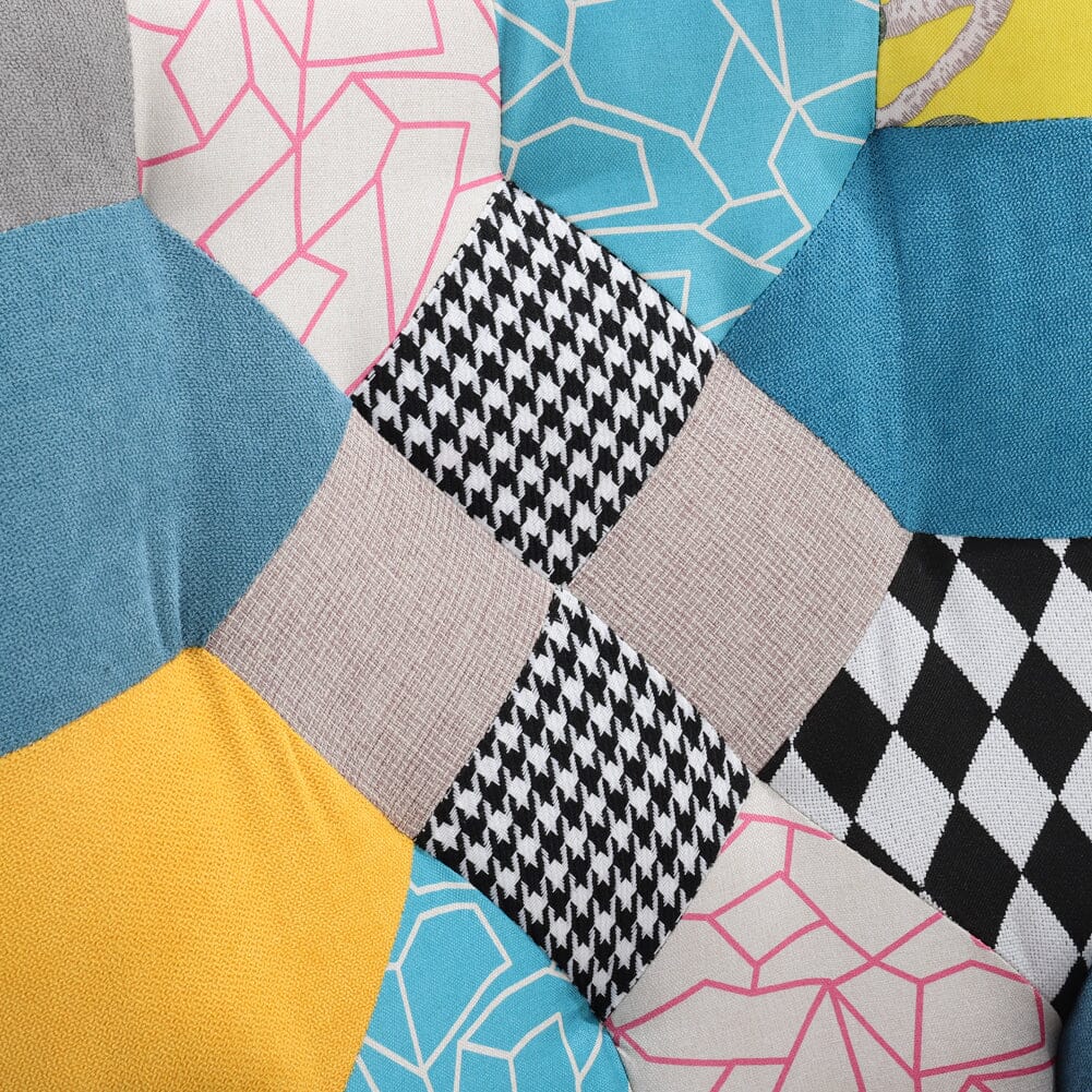 - Vivid patchwork covering of the seat adds a fancy vibe to the piece